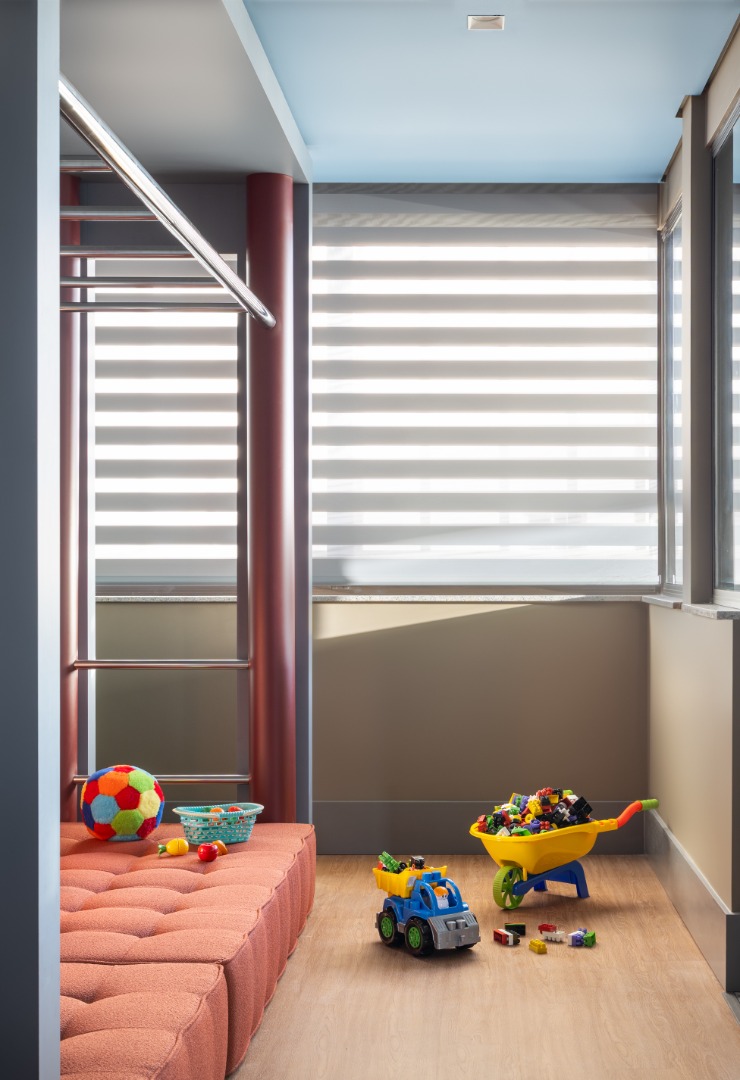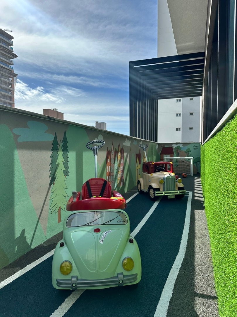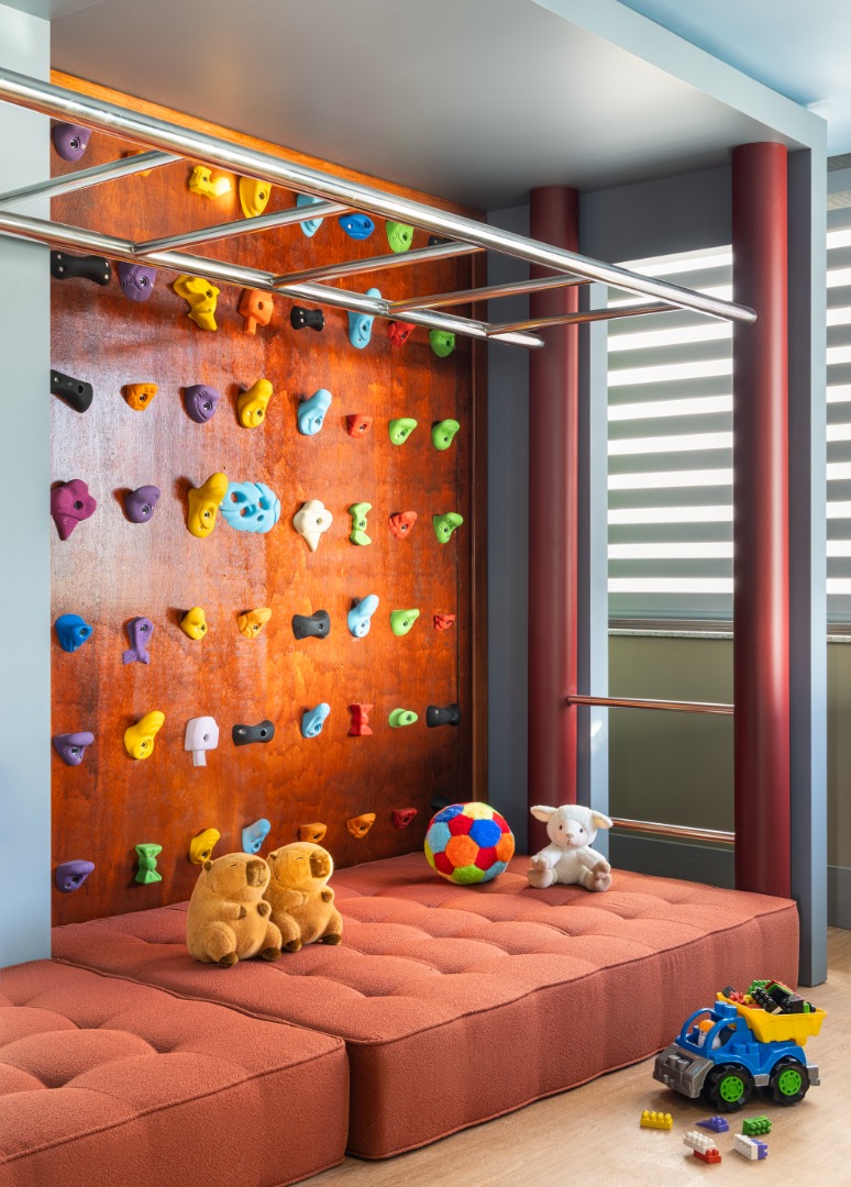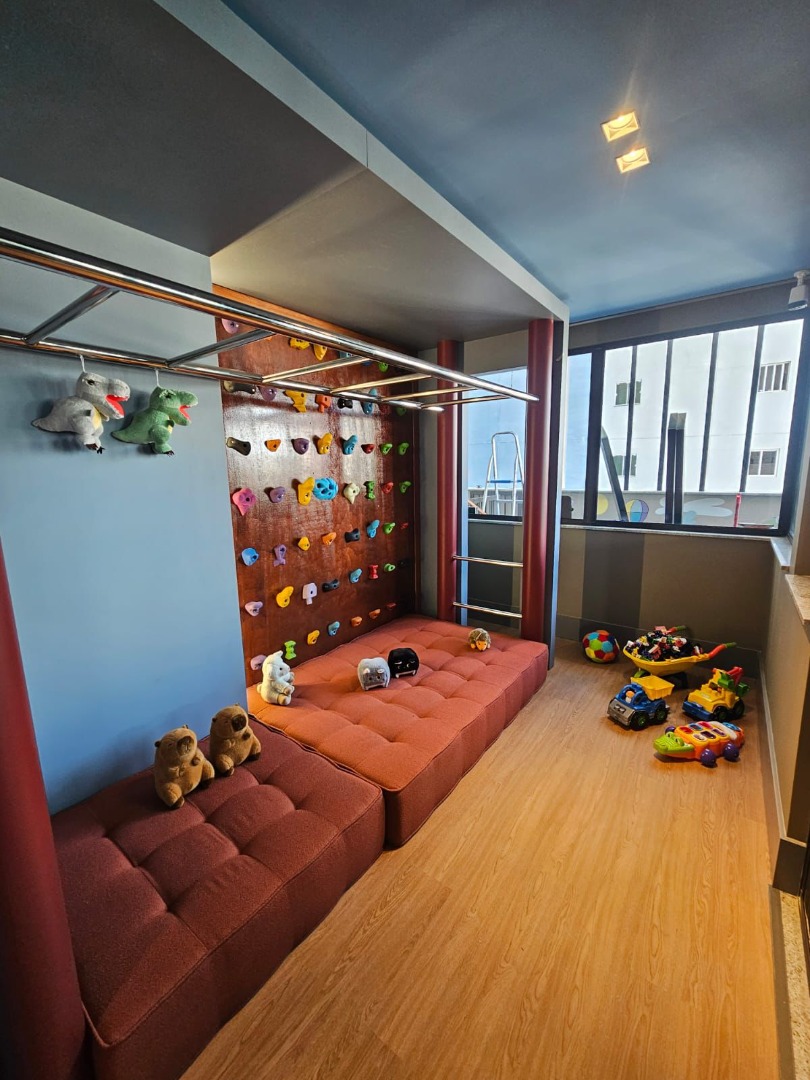 - Espaço Kids Indoor com pipoqueira, escalada, monkey bar, casinha suspensa, arco e flecha, tudo isso com piso especial, antialérgico, resistente, de fácil limpeza e manutenção com conforto térmico e acústico;