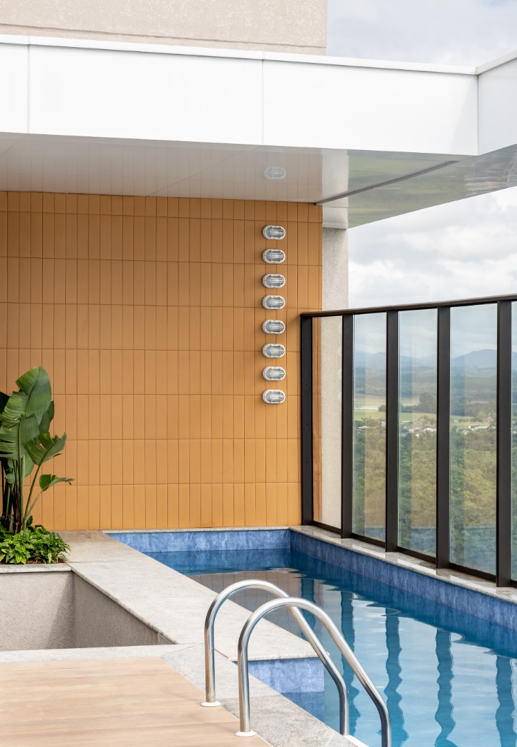 - Terraço Piscina oferece seus melhores momentos ao sol com espreguiçadeiras, mesas e ducha;