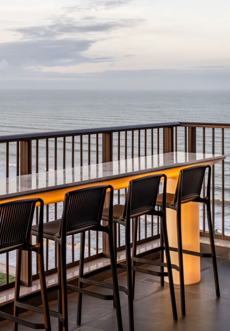- Sacadas com vista mar e guarda-corpo panorâmico;