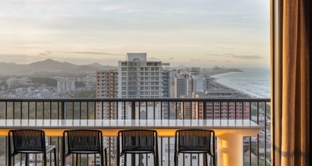 Os apartamentos de 1 suíte + 2 demi-suítes oferecem suíte e living com frente mar. Tenha a melhor vista para começar bem o dia.
