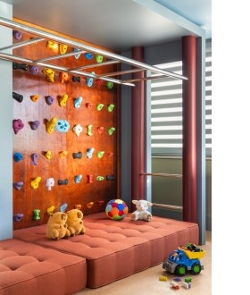 - Espaço Kids Indoor com pipoqueira, escalada, monkey bar, casinha suspensa, arco e flecha, tudo isso com piso especial, antialérgico, resistente, de fácil limpeza e manutenção com conforto térmico e acústico;