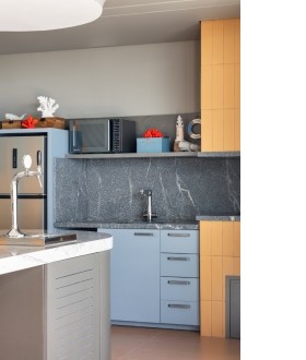 Os apartamentos de 1 suíte + 2 demi-suítes oferecem suíte e living com frente mar. Tenha a melhor vista para começar bem o dia.