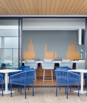 - Terraço Piscina oferece seus melhores momentos ao sol com espreguiçadeiras, mesas e ducha;